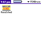 Version 1.0 (01/22/04) Released 01/22/04 | Installing: Hotsync the RaceSched Installer.prc file to your PDA. You will see an icon called InstRaceS in the PDABruce category. Select this icon to install and launch RaceSched. Several files will be extracted from the archive and the archive will delete itself. SoftwareDB will automatically run once the installer has completed. When you exit the program you will see the RaceSched program icon. | Prior to installing