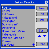 | | The Tracks screen allows you to add/edit race tracks as required. Use: - New - to add a new value